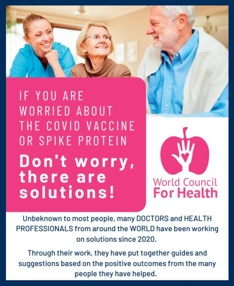 PDF flyers: Spike Protein Detox Summary; Early Covid-19 Treatment Guidelines; Vaccine injury help - World Council for Health
